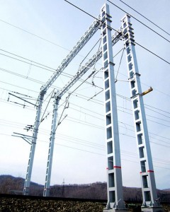 Металлические стойки опор контактной связи